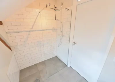 Beide Schlafzimmer, die nebeneinander liegen, bieten ein Doppelbett mit einer Breite von 1,60m. Selbstverständlich sind beide Schlafräume mit Kleiderschränken und Ablagemöglichkeiten ausgestattet. Das Bad ist mit einem Waschbecken, WC, Fenster und einer großzügigen Dusche ausgestattet.